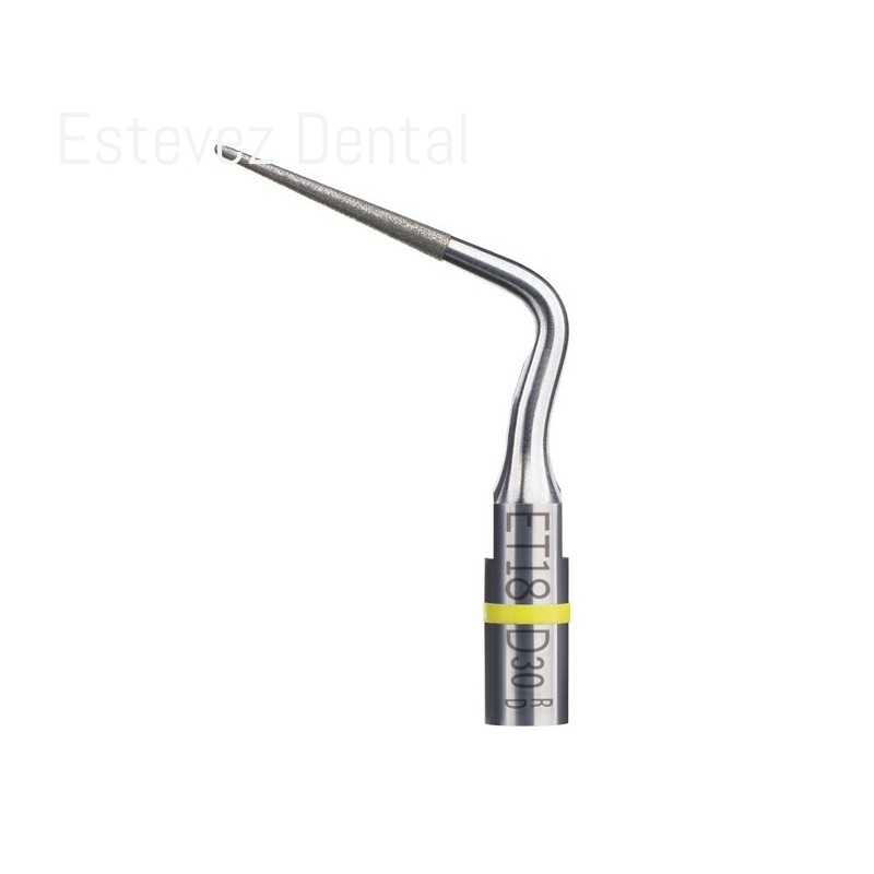 PUNTA INSERTO ENDODONCIA ET18D SATELECInserto diamantado de acero de 76 m, longitud de 18 mm y conicidad del 5%.CARACTERÍSTICAS:- Finalizar la cavidad de acceso- Eliminar protuberancias de dentina, calcificaciones y materiales de relleno