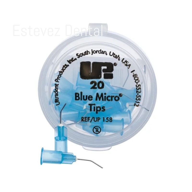 BLUE MICRO TIP 20 UdsCARACTERÍSTICAS: - Proporciona precisión milimétrica- La cánula estrecha aplica material con precisión- Cánula de 25 ga- De un solo uso INDICACIONES:- Grabador Ultra-Etch- Agente secante PrimaDryCONTENIDO: - 20 unidades