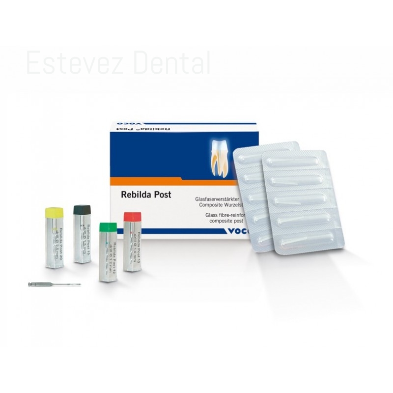 REBILDA POST INTRO SETCARACTERÍSTICAS:- Comportamiento elástico similar al diente, alta resistencia a la flexión- Alta radiopacidad (350 %Al)- Forma anatómica- Fijación adhesiva- Revisión posible- Todos los materiales en el set están adaptados uno al otro- Colocación del poste y reconstrucción de muñon en un sólo pasoINDICACIONES:- En casos de sustancia dentaria insuficiente, soporte del muñón en la reconstrucción postendodóntica para el posterior apoyo y fijación de restauraciones coronariasCONTENIDO:- Set 5 poste de (ø 1,2 mm, ø 1,5 mm, ø 2,0 mm)- 1 fresa piloto de (ø 1,2 mm, ø 1,5 mm, ø 2,0 mm)