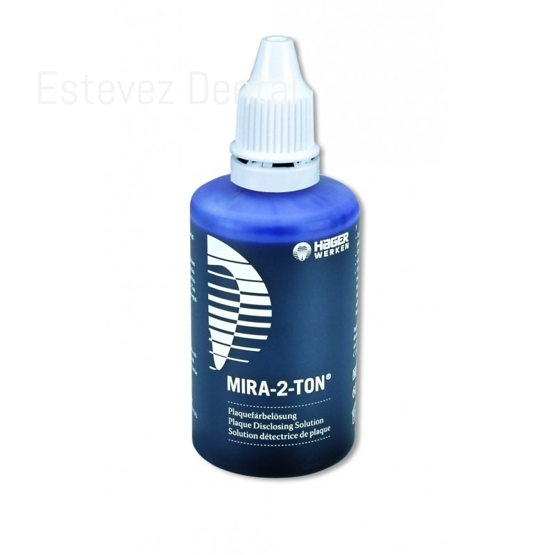 MIRA-2-TON LÍQUIDO REVELADOR DE PLACA 60ml HAGER & WERKENCARACTERÍSTICAS:- La placa más antigua se revela en azul, la placa más nueva en rosa- Probado en la práctica dental durante años.- Amigable con el paciente, ayuda con la motivación- Sin eritrosina y sin gluten- Las decoloraciones pueden eliminarse cepillando los dientes- Fácil de reducir a la mitad: una tableta suficiente para 2 aplicaciones