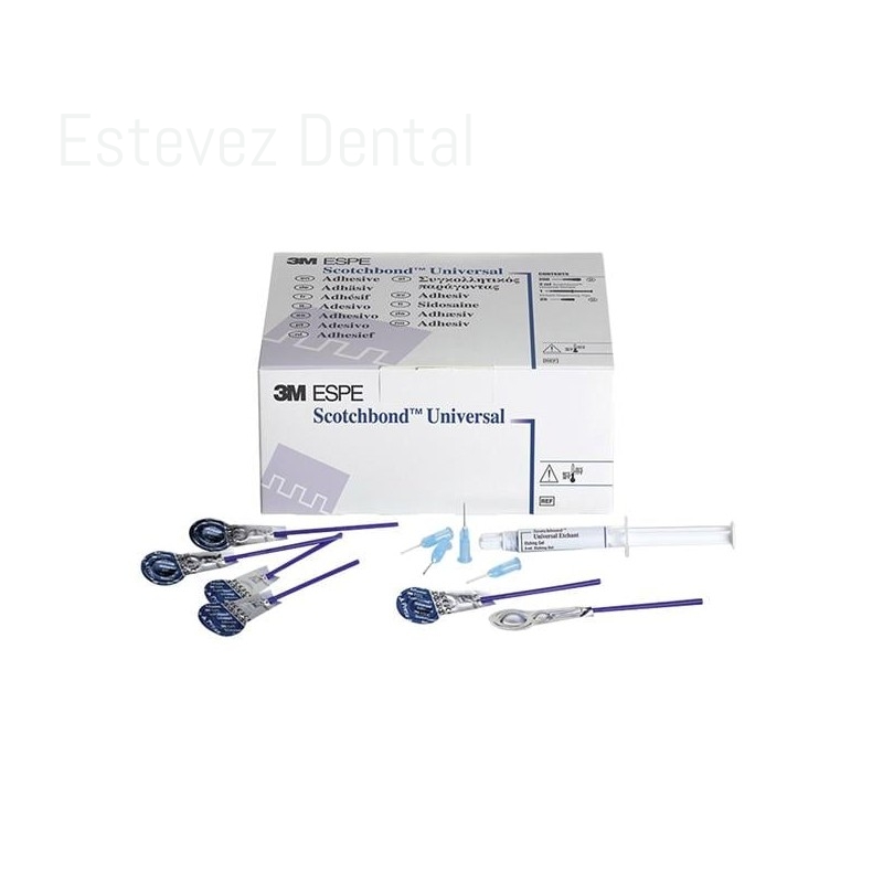 SCOTCHBOND UNIVERSAL L-POP 100 udsCARACTERÍSTICAS: - El adhesivo 3M Scotchbond Universal es el único necesario en cualquier clínica, puesto que proporciona la máxima resistencia y velocidad- Aplicación de un solo paso y revestimiento, con un rápido tiempo de aplicación de 35 segundos- Incluye silano en su composición por lo que no requiere de un primer cerámico adicional- Gel grabador de consistencia y color mejorados y de fácil colocación- Evita la sensibilidad postoperatoria- Bote con tapa abatible para manipularlo con una mano y boquilla diseñada para controlar la dispensación- También disponible en monodosis L-Pop- No es necesario refrigerar; almacénelo hasta dos años a temperatura ambienteCONTENIDO: - 500 monodosis, 1 jeringa grabador de 3ml, 25 puntas de aplicación- 100 monodosis, 1 jeringa grabador de 3 ml, 25 puntas de aplicaciónAPLICACIONES RECOMENDADAS: - Indicaciones para la colocación directa Adhesión del composite o compómero para toda clase de restauraciones directas- Desensibilización de la superficie de la raíz- Sellado de la dentina previo al cementado de las restauraciones de amalgama- Revestimiento protectivo para los materiales restauradores a base de ionómero de vidrio- Reparación de restauraciones con composite o compómero- Adhesión de selladores de fosas y fisuras- Indicaciones para la colocación indirecta Imprimación para restauraciones con zirconio, alúmina, metal o cerámica vítrea- Adhesión de carillas con Cemento para Carillas RelyX- Adhesión de restauración indirecta en combinación con cemento RelyX Ultimate- Adhesión de materiales para la construcción de muñones autopolimerizables o de polimerización dual y cementos de resina (con el Activador de Polimerización Dual Scotchbond DCA)- Reparación intraoral de restauraciones indirectas existentes- Sellado de la dentina previo a la temporización para la colocación indirecta de la restauración