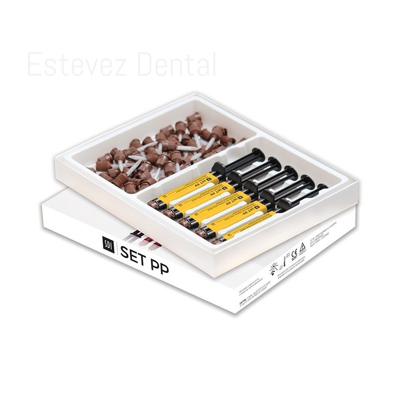 SET PP SURTIDO 5 JERseT es un cemento resinoso autoadhesivo y autograbador, diseñado para la cementación final de materiales restaurativos a base de metales, resina y cerámica. seT se une químicamente a la estructura dental y a todo tipo de material alveolar. seT está disponible en cápsulas y en sistema de jeringa automezcla pasta/pasta (seT PP).CARACTERÍSTICAS:Tecnología patentada de relleno ionglass- SeT PP utiliza la tecnología patentada de relleno ionglass de SDI, la cual es desarrollada por nuestros técnicos especializados. ionglass es un vidrio reactivo radio-opaco con alta liberación de iones que se utiliza en la amplia gama de cementos dentales de SDI. seT libera una cantidad sustancialmente mayor de flúor para ayudar a la remineralización de la dentición natural.Radiopacity- Detectable en radiografías con rayos X. seT es excelente para hacer reconocimientos cuando los márgenes son revisados con regularidad para observar su integridad. No contie