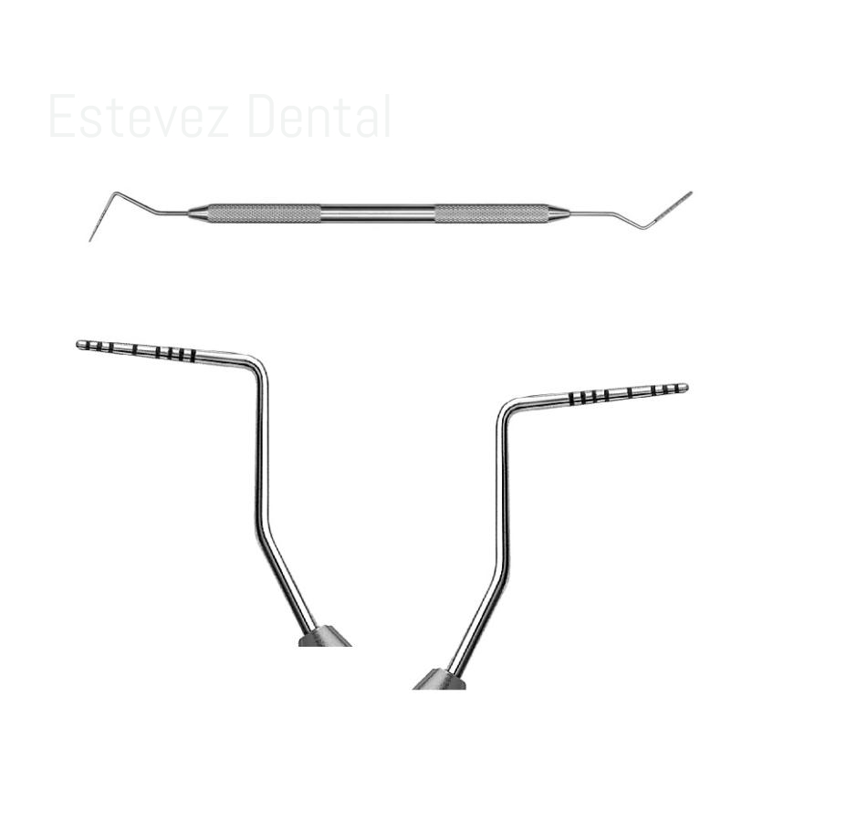 Sonda periodontal útil para estudiar la profundidad de las bolsas periodontales y para explorar las furcas de molares inferiores. Son precisas y permiten hacer trabajos excelentes.