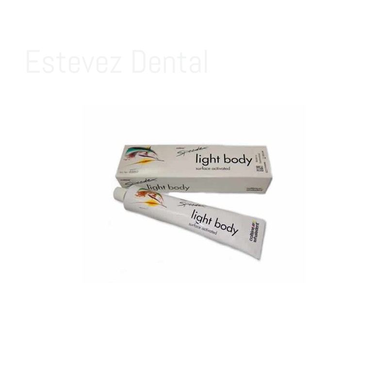 SPEEDEX LIGHT BODY 140ml COLTENECARACTERÍSTICAS:- Speedex tiene la reproducción y la recuperación elástica que solo se encuentran en las siliconas A- Como consecuencia de su baja contracción, las dimensiones de las impresiones se mantienen estables y pueden vaciarse en un plazo de hasta 7 días sin problemas- Esta silicona C de primera clase muestra una excepcional humectabilidad y unas excelentes características de fluidez- Speedex medium desplaza la saliva y la sangre y no tiene efectos secundarios negativos- El sistema Speedex suma la ventaja de trabajar con un solo activador para tres consistencias- Tiempos de trabajo controlables- Superficie activa- Control de la humedad- Precisión optimizada- Excelentes propiedades de la fluidez