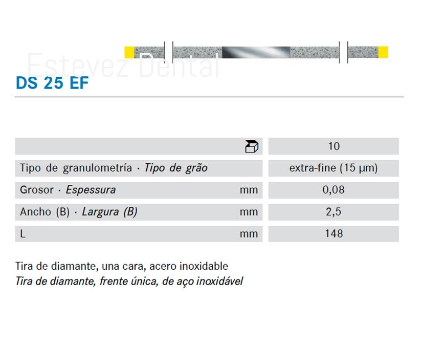 Tiras de pulir de acero inoxidable con grano de diamante de 147 mm. x 25 mm. (DS 25)