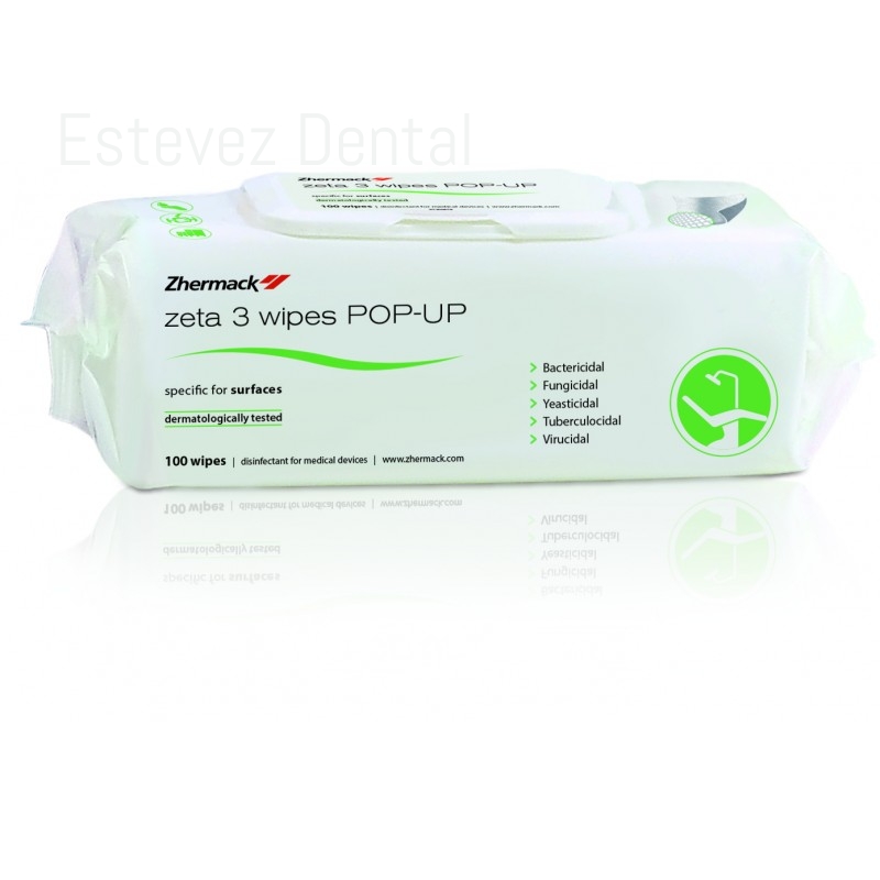 ZETA 3 SOFT DESINFECTANTE SUPERFICIES 750 mlZeta 3 Wipes POP-UP son toallitas grandes impregnadas con una solución con contenido reducido de alcohol para desinfectar y limpiar rápidamente las superficies de dispositivos médicos, incluidas las más delicadas.CARACTERÍSTICAS:- Amplio espectro de acción conforme a las últimas normas europeas sobre desinfección- Productos libres de aldehídos y fenoles- Compatibilidad probada hasta con las superficies más delicadasVENTAJAS:- Eficacia: alta protección para operadores y pacientes- Seguridad: sin aldehídos ni fenoles - Velocidad y conveniencia: desinfección y limpieza en un solo pasoFICHA TÉCNICA:- Tipo de producto: Desinfectante- Ingredientes activos: Sales de amonio cuaternario- Tiempo de acción: 1 a 5 minutos- Aplicaciones: Superficies delicadas- Características distintivas: Toallitas grandes, gruesas, resistentes y testado dermatológicamenteESPECTRO DE ACCIÓN:Bactericida: EN 13697, EN 1276*, EN 14561* y EN