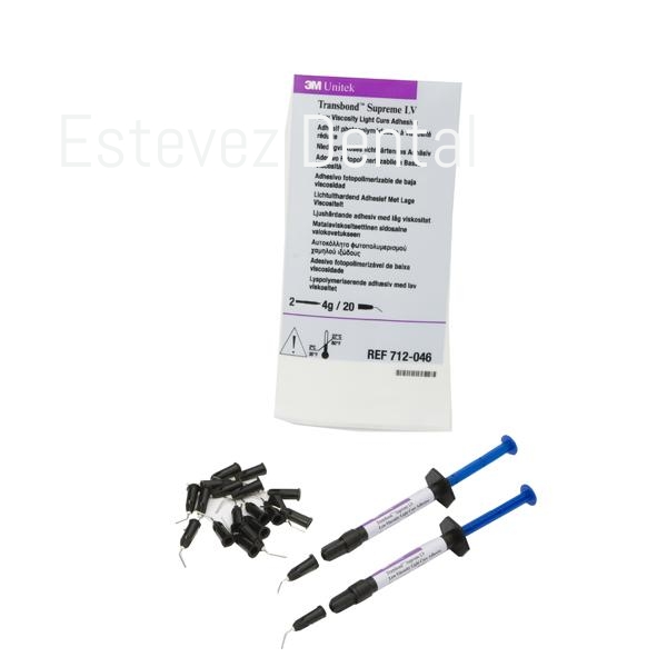 El Adhesivo de baja viscosidad Transbond™ Supreme LV es un adhesivo fluido diseñado para ortodoncia que le ofrece las ventajas de su baja viscosidad en aplicaciones como el cementado indirecto o cualquier otra situación donde pueda necesitar un adhesivo fluido. El adhesivo Transbond™ Supreme LV fluye al ser aplicado con la jeringa pero permanece en su sitio sin deslizarse ni gotear hasta que es fotocurado. Las cómodas puntas metálicas de la jeringa le aseguran una aplicación precisa y la cantidad justa de adhesivo para evitar el desperdicio de material, de una manera práctica y económica. Adhesivo fluido Indicado tanto para cementado directo como indirecto. Nanopartículas de relleno para una fuerza de adhesión y manejo excepcionales. Aplicación eficiente sin desperdicio de material. Compatible con todos los primers de 3M Unitek.