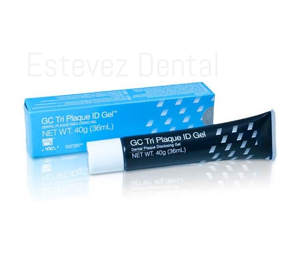 Un exclusivo gel revelador de placa de tres tonos que identifica las biopelículas nuevas, maduras y ácidas. El exclusivo GC Tri Plaque ID Gel no solo diferencia entre placa antigua y nueva en unos sencillos pasos, sino que también indica exactamente dónde son más activas las bacterias revelando el pH ácido. Esta información adicional le será de gran ayuda en la práctica diaria a fin de estimular a sus pacientes para que mejoren su higiene bucal. Porque después de todo, los pacientes deben ver para creer. La placa se muestra en tres tonos: 1. azul/violeta - placa antigua (más de 48 horas) 2. rojo/rosáceo - placa formada recientemente 3. azul/claro: placa con riesgo alto Después del diagnóstico, lavarse los dientes para retirarlo