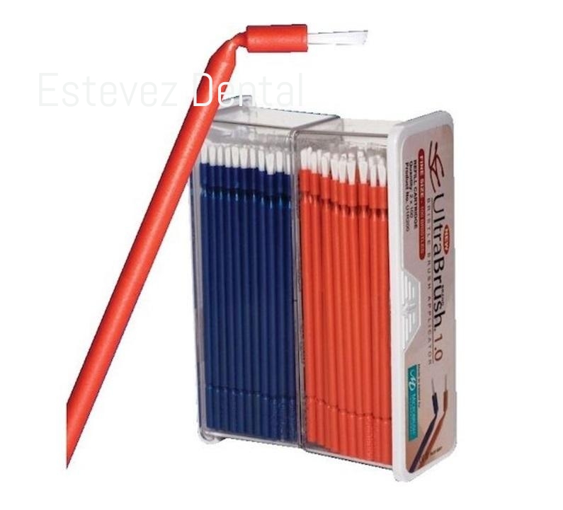 - Las fibras del aplicador de cepillo de cerdas UltraBrush son resistentes a los productos químicos para soportar los materiales dentales más duros. El cabezal del aplicador se dobla cerca de la punta y garantiza una aplicación precisa al mismo tiempo que proporciona un mejor control. Gracias a la tecnología ''Stay-Put Bending'', el cabezal del aplicador permanece en el ángulo deseado sin rebotes.