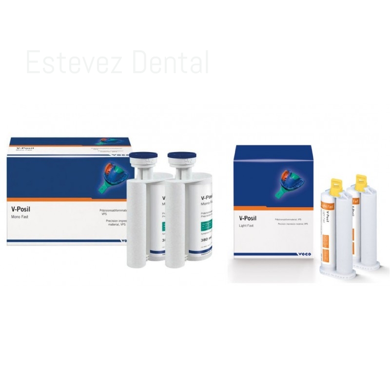 V-POSIL STARTER KIT MONO FAST + LIGHT FAST + PUNTAS DE MEZCLAV-POSIL FLUIDA MONO FAST 2 x 380 mlMaterial de impresión de precisión, VPS.CARACTERÍSTICAS:- Silicona A muy hidrófila para la más alta precisión- Alta exactitud a la dimensión- Largo tiempo de elaboración y a la vez un corto tiempo en la boca- La alta resistencia a la rotura y la alta recuperación elástica garantizan una seguridad durante y después de la toma- Buena hidrofilia, incluso en el estado fraguado, hace perfectamente el vaciado y así el tratamiento protésicoINDICACIONES:- Sobreimpresiones para prótesis e implantes combinados (transmisión de postes de impresión y piezas primarias)- Impresiones funcionales- Técnica de coronas y puentes / y rehabilitación de incrustaciones- Impresiones de prótesis removibles- Impresiones para rebasados- Transferencia de pernos radiculares para la fabricación de superestructuras de muñones indirectas- Técnica Multi tray- Técnica de doble mezcla, de sándwic