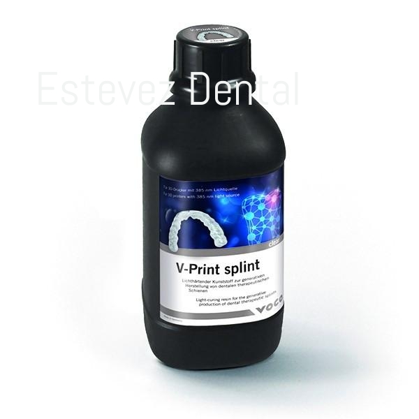 Resina fotopolimerizable transparente de 385nm para la producción generativa de férulas dentales terapéuticas.