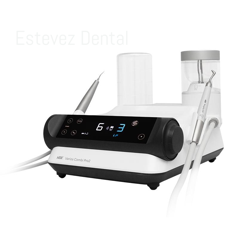 Varios Combi Pro2 es un dispositivo que combina el pulido subgingival y supragingival con ultrasonidos para un tratamiento completo de profilaxis dental.