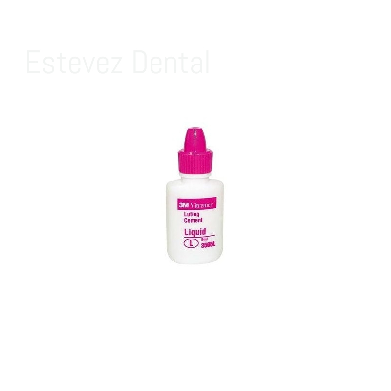 RELYX LUTING REPOSICIÓN LÍQUIDO 9 ml.RelyX Luting es un cemento de resina modificada con ionómeros de vidrio usada para cementaciones rutinarias de coronas de metal y PFM, puentes, inlays/onlays y coronas hechas con núcleos completamente de alúmina o circonio como Lava.CARACTERÍSTICAS:- Radiopaco Liberación de flúor prolongada- Virtualmente sin sensibilidad post-operatoria- El ionómero de vidrio híbrido ofrece una liberación prolongada de flúor.- Alta resistencia a las fracturas para duración.USOS:- Coronas y puentes de Porcelana fundida al metal (PFM) Coronas de metal, inlays y onlays- Coronas provisionales de metal prefabricadas- Núcleos reforzados completamente con zirconia o alumina de coronas y puentes cerámicos (p.e. Lava Zirconia de 3M ESPE o Procera® AllCeram)- Postizos prefabricados o de molde Accesorios y bandas para OrtodonciasCONTENIDO:- 1 Botella de Líquido de 9 ml