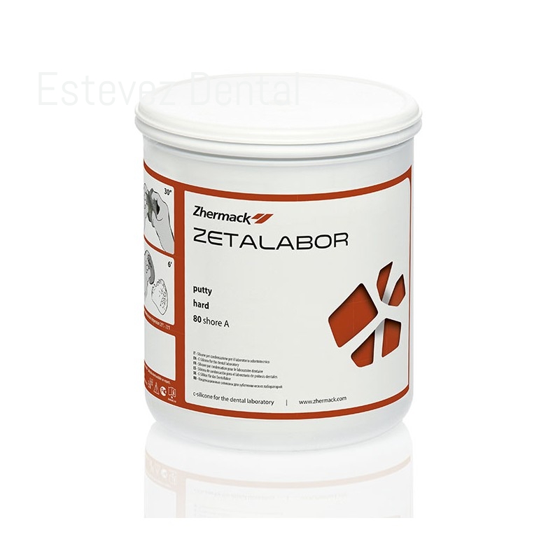 ZETALABOR 2,6 KgDiseñadas para el laboratorio dental, las siliconas de condensación Zetalabor y Titanium se caracterizan por su gran dureza y sus buenas propiedades mecánicas. Se pueden utilizar en diversas aplicaciones que requieren tiempos breves y temperaturas de trabajo no excesivamente altas. Se recomienda el uso de Zetalabor y Titanium para contramuflas en aplicaciones para prótesis removible, llaves para crear falsas encías usando la técnica indirecta, llaves para la preparación de resinas autopolimerizables y diversas otras aplicaciones. Durante más de 35 años, su facilidad de uso ha ayudado a acelerar los procedimientos de laboratorio y a mejorar el rendimiento diario de los protésicos dentales.CARACTERÍSTICAS:- Resistente a temperaturas de hasta 100 °C- Buena precisión- Siliconas para mezclar únicamente con catalizador en gel- Recomendada para: Contramufla para prótesis removible realizadas en resinas termopolimerizables, Llaves para prótesis en res